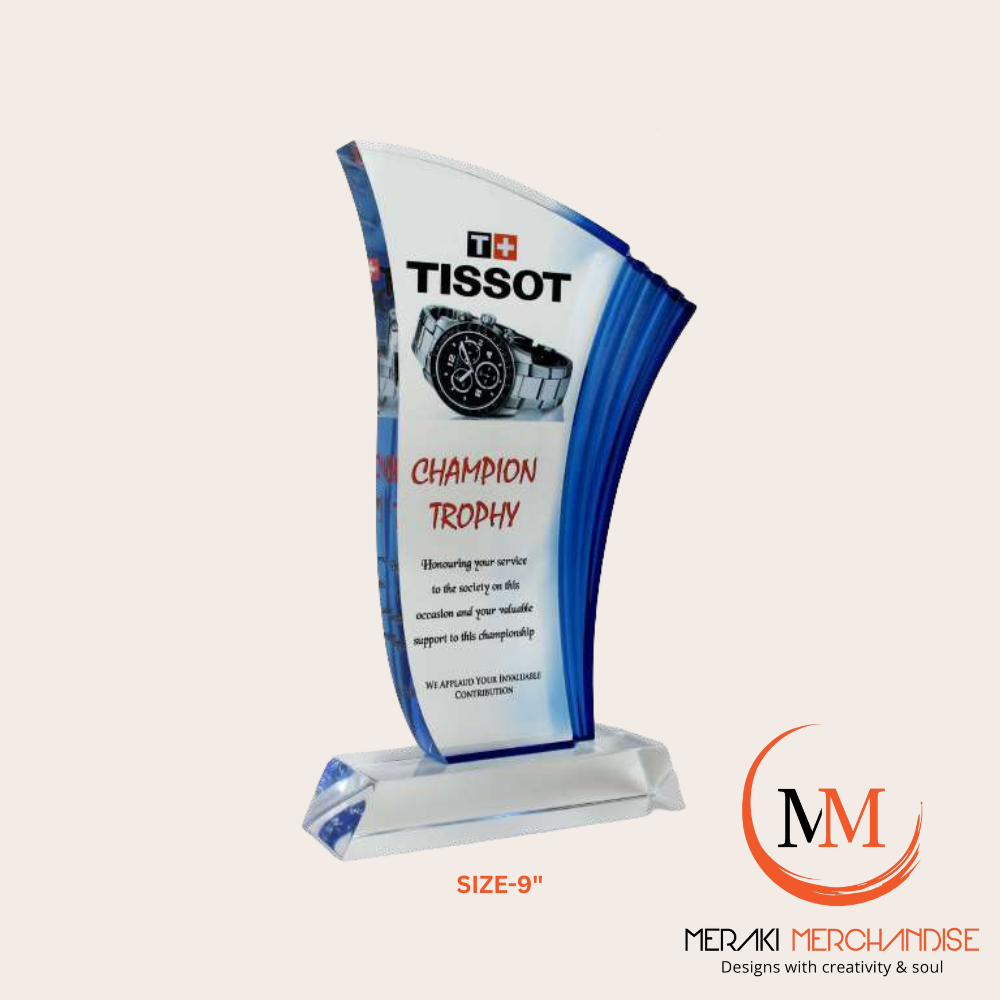 Honor achievement with this 9-inch premium acrylic award trophy by Meraki Merchandise. Featuring a sleek curved design with excellent finishing, it is perfect for corporate gifting, championship awards, events, and recognition ceremonies. Fully customizable with names, logos, text, or complete custom designs.