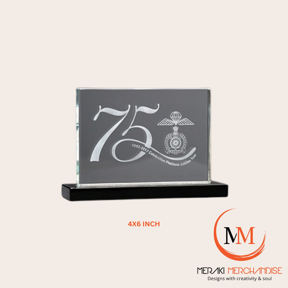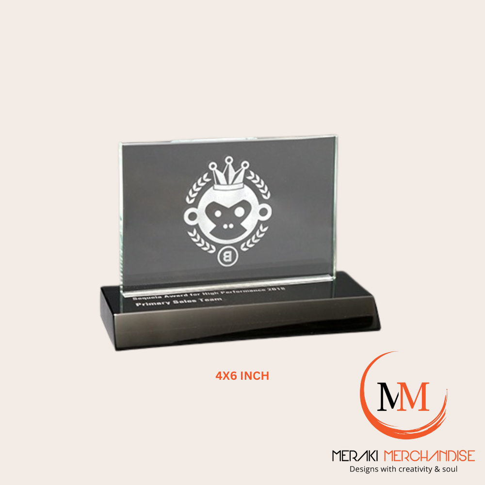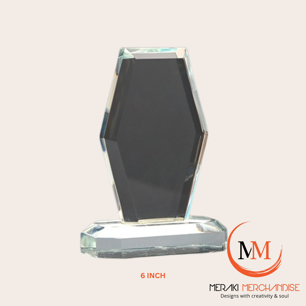 Recognize excellence with the Meraki Premium Custom Glass Trophy (6 inch). Crafted from high-quality glass with superior finishing, this compact yet elegant trophy is ideal for corporate gifting, employee recognition, and professional events. Fully customizable with names, logos, or complete bespoke designs.