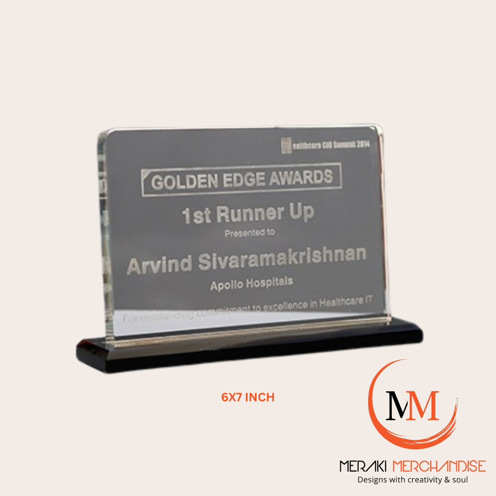Celebrate sporting achievements with the Meraki Merchandise 10.5-inch Hole-In-One Award (Size-10.5 Golf & Travel Show Plaque). This unique acrylic trophy features a premium vertical plaque design, perfect for corporate events, golf tournaments, and recognition. Fully customizable for any occasion or recipient.