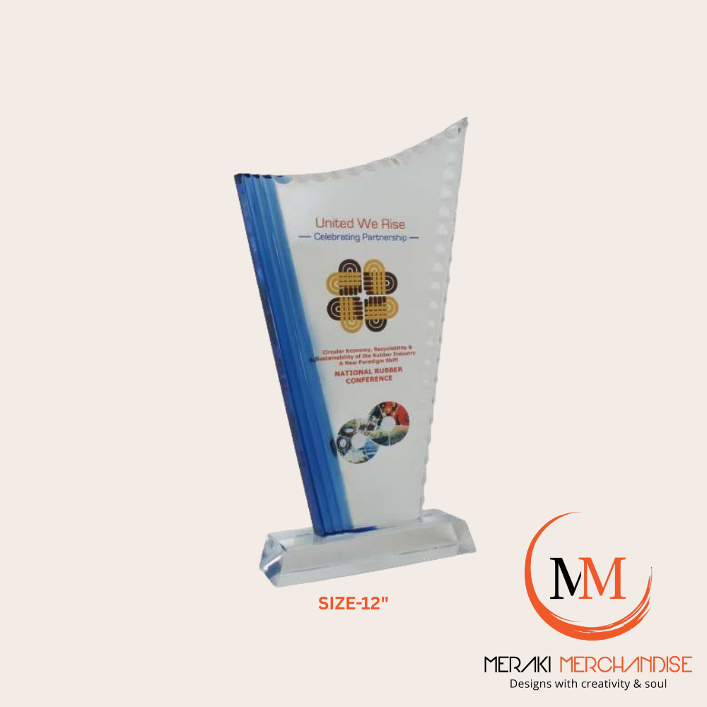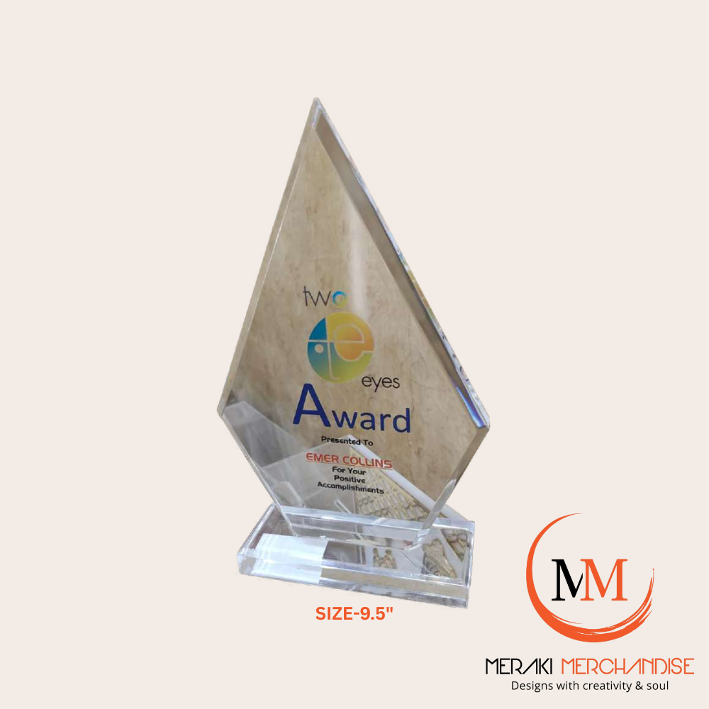Premium 8.5-inch acrylic award by Meraki Merchandise with superior finishing and an elegant shield design. Ideal for corporate gifting, healthcare awards, events, conferences, employee recognition, and ceremonies. Choose single-name personalisation or complete customisation with your logo and design—everything is possible with Meraki Merchandise.
