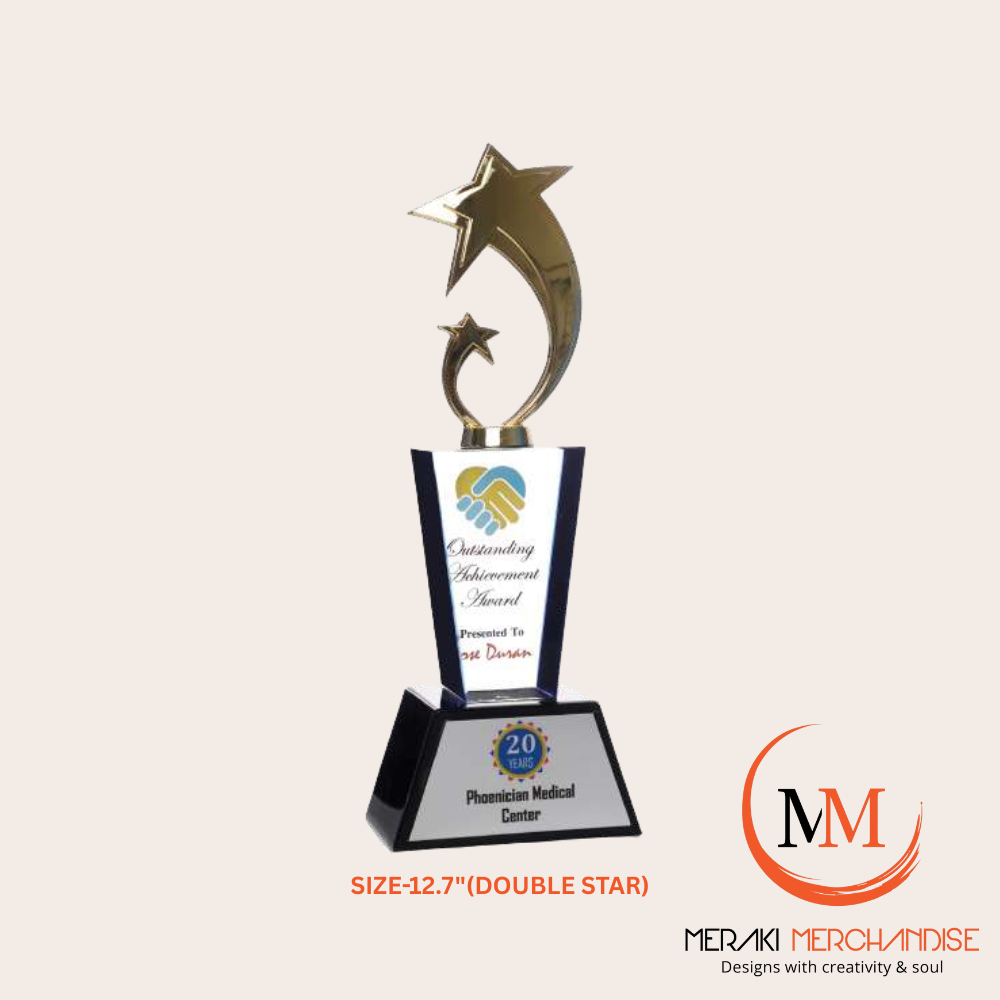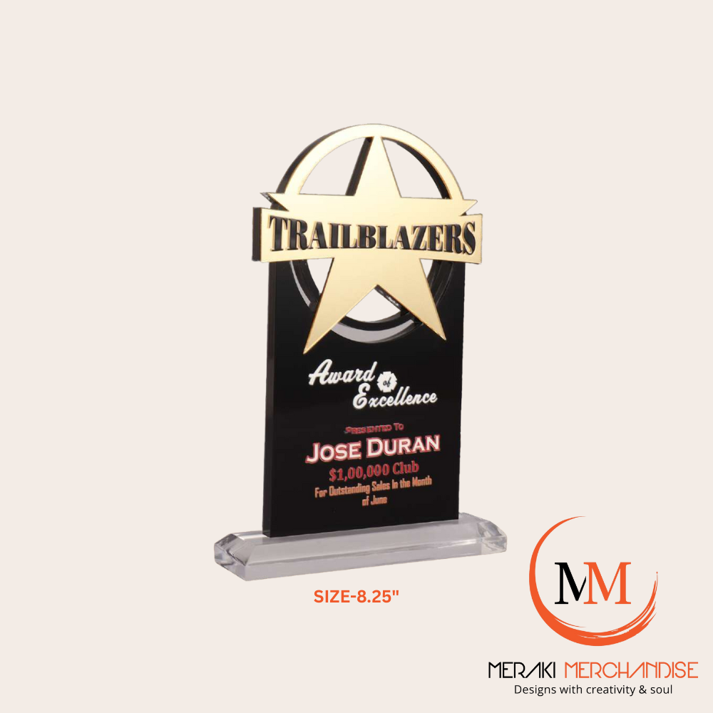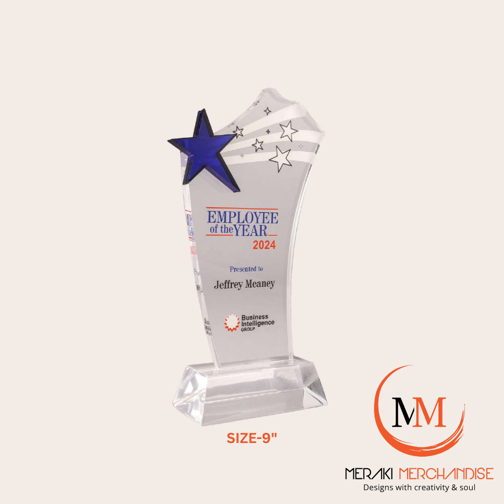 Honor excellence with this 9-inch premium acrylic award trophy from Meraki Merchandise. Featuring superior finishing and an elegant modern design, it is ideal for corporate gifting, award ceremonies, events, and recognition programs. Fully customizable with names, logos, text, or complete custom designs.