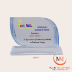 The modern curved design paired with a strong acrylic base makes it ideal for corporate events, leadership awards, employee appreciation, annual functions, conferences, seminars, alumni meets, and milestone celebrations. Its compact 6-inch height ensures it is easy to display on desks, shelves, and award cabinets while still making a powerful statement.