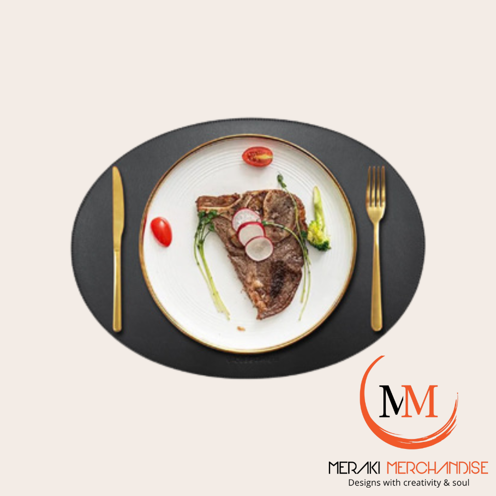 Upgrade your dining experience with the Meraki Merchandise Premium Leather Dining Table Replacements—a perfect blend of elegance, durability, and modern craftsmanship. Made from high-quality leather, these table accessories are designed to protect your dining surface while adding a sophisticated touch to your décor. Whether used for daily meals or special occasions, they bring a refined, luxurious look to any dining setup.