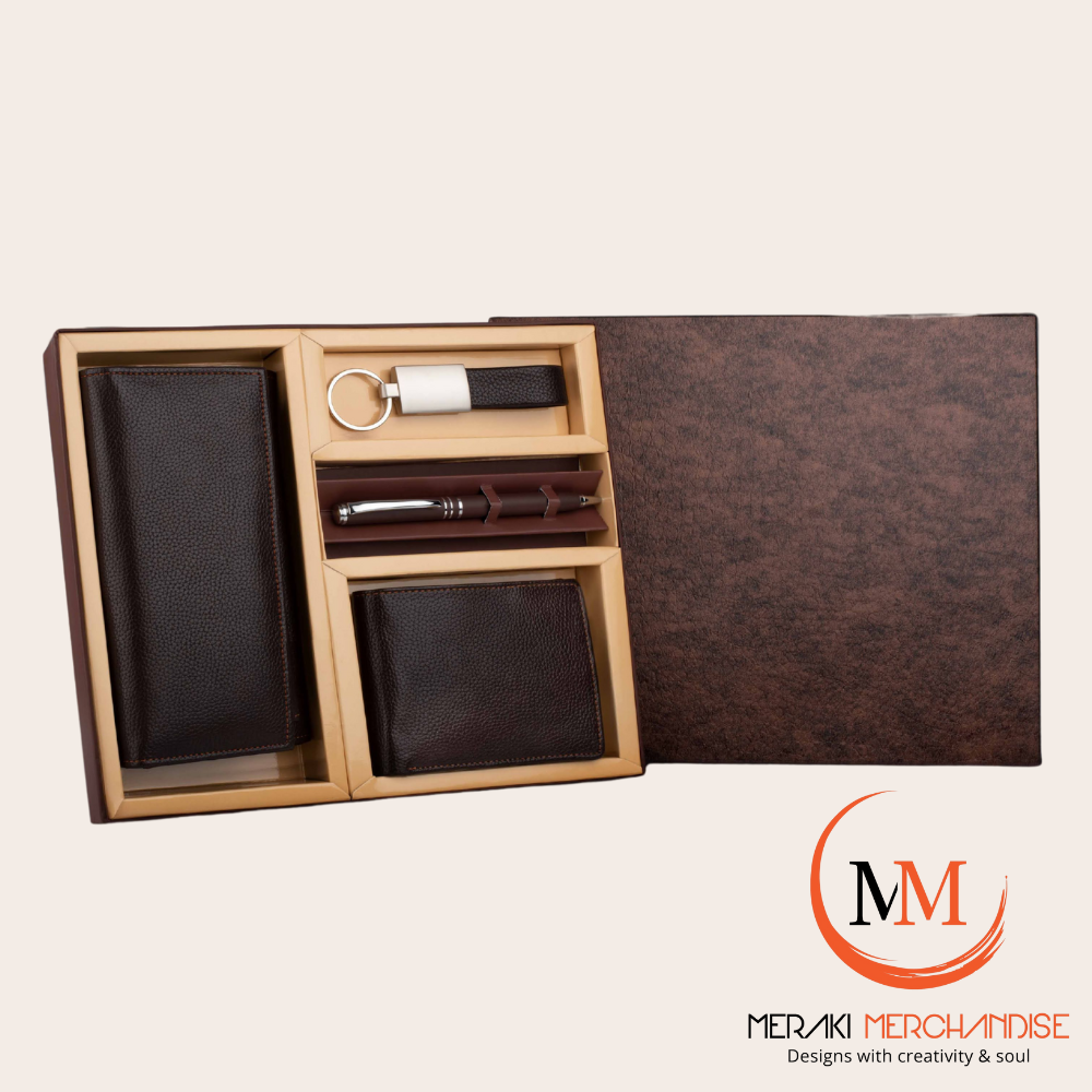 Make every new beginning memorable with the Meraki Merchandise Employee Welcome Kit—an elegant collection of premium leather essentials crafted to inspire confidence, professionalism, and belonging from day one. Designed with the concept of meraki—putting soul, passion, and care into every creation—this kit combines practicality with luxury, offering new employees a warm, thoughtful, and lasting first impression.