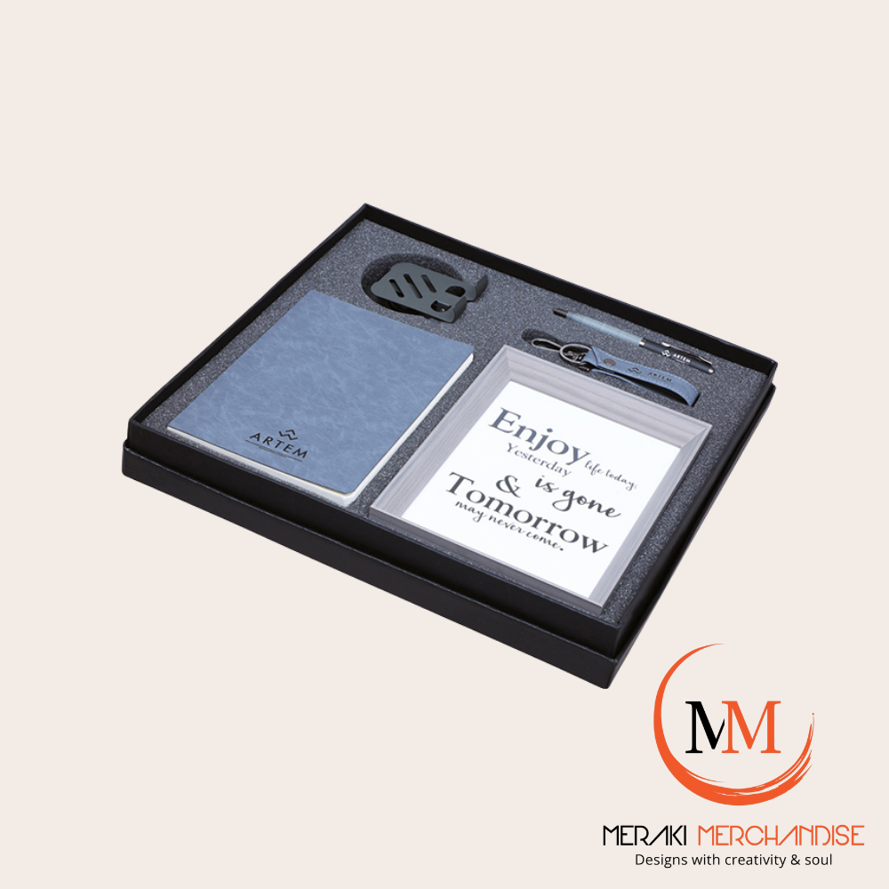 Perfect for corporate events, boardroom meetings, or client appreciation, this executive gift set is an ideal way to leave a lasting impression. Whether it’s a sleek notebook, premium pen, high-quality leather accessories, or gourmet treats, the Meraki Executive Gift Set embodies professionalism and class.