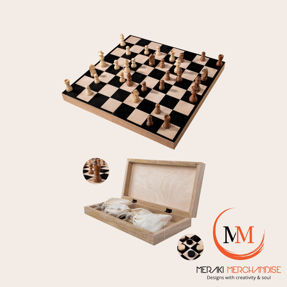 Elevate strategy and style with the Meraki Luxury Wooden Chess Game Set. Featuring a premium chessboard with finely crafted wooden pieces and concealed storage, this elegant game set is perfect for corporate gifting, events, and fully customized branding solutions.