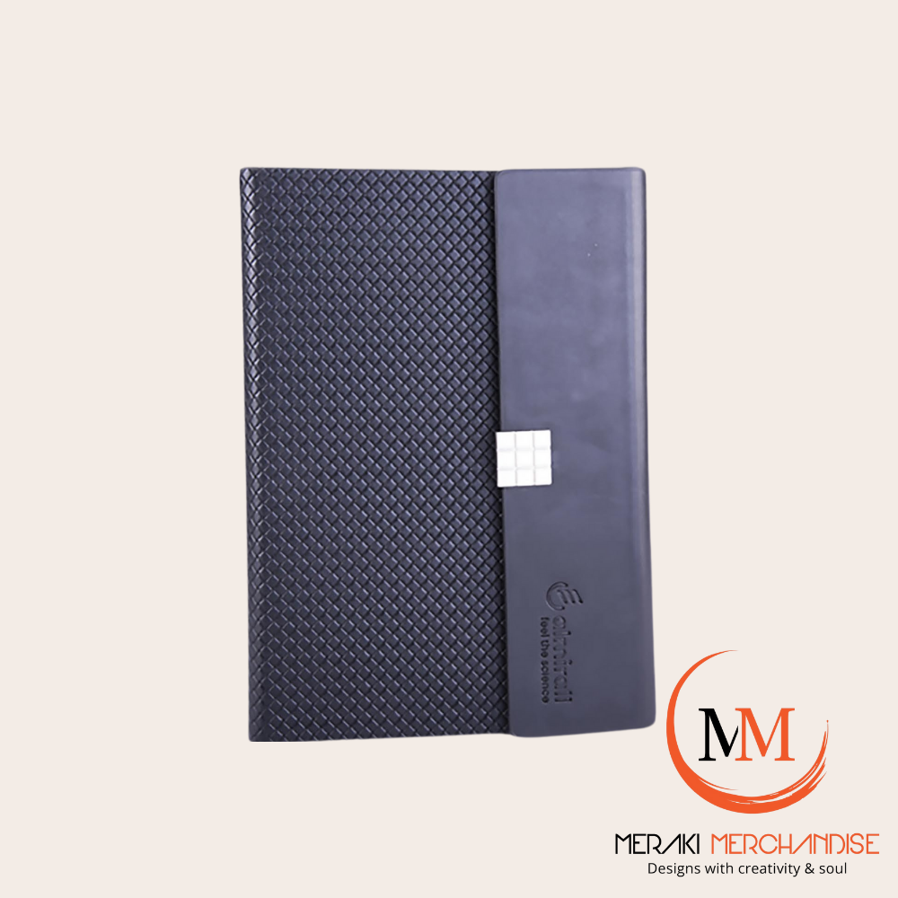 A premium PU leatherite diary with a metallic accent lock for high-end professional appeal.