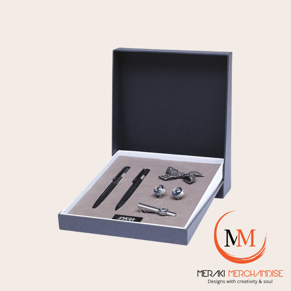 Perfect for corporate events, boardroom meetings, or client appreciation, this executive gift set is an ideal way to leave a lasting impression. Whether it’s a sleek notebook, premium pen, high-quality leather accessories, or gourmet treats, the Meraki Executive Gift Set embodies professionalism and class.