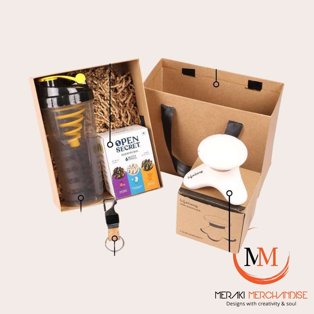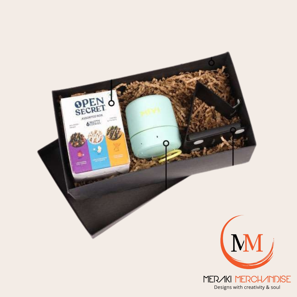 Enhance productivity from day one with the Meraki Modern Workspace New Joining Kit, a premium corporate gift set featuring an adjustable laptop stand, insulated water bottle, and luxury gift box. Perfect for employee onboarding, corporate gifting, and events, with complete customization options available.