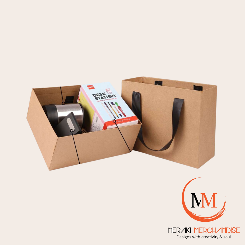 Create an inspiring workspace with the Meraki Smart Desk New Joining Kit, a premium corporate gift set featuring a desk stationery kit, stainless steel mug, utility accessory, and eco-friendly gift packaging. Perfect for employee onboarding, corporate gifting, and events, with complete customization options available.