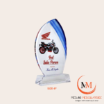 The stylish curved silhouette and 8-inch height make it perfect for corporate gifting, sales achievement awards, employee recognition programs, dealer meets, annual functions, conferences, and promotional events. A strong acrylic base ensures stability and makes it ideal for desk display or award showcases.