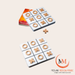A premium wooden Tic Tac Toe game by Meraki Merchandise, crafted with a modern white board and natural wooden X & O pieces. Perfect for corporate gifting and events, with complete customization options to showcase your brand or design vision.